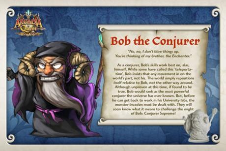 As a conjurer, Bob's skills work best on, alas, himself. While some have called this 'teleportation,' Bob insists that any movement is on the world's part, not his. The world simply repositions itself relative to Bob, not the other way around. Although unproven at this time, if found to be true, Bob would rank as the most powerful conjurer the universe has ever known. But, before he can get back to work in his University labs, the monster invasion must be dealt with. They will soon know what it means to challenge the might of Bob: Conjurer Supreme!
