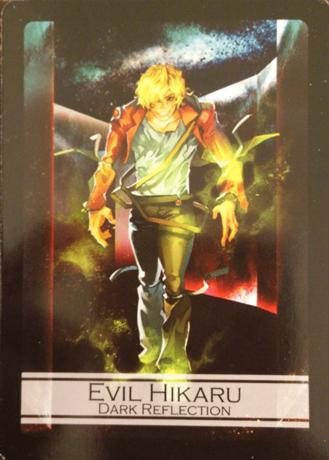 BattleCON: War's hidden secret bonus character, Evil Hikaru is the twisted and dark reflection of the hero Hikaru. With four evil elemental antes mirroring Hikaru's pure elemental tokens but with more insidious, offensive effects, combined with his incredibly powerful styles and unique base, Evil Hikaru makes for an excellent hidden easter egg secret bonus boss.