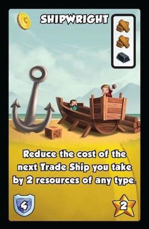 Reduce the cost of the next Trade Ship you take by 2 resources of any type.