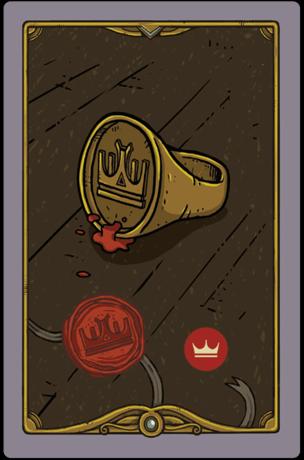 This "Royal Signet Ring" Royal Writ Mandate card lets you draw 1 king seal from the general supply. Return the card to the bottom of the Royal Writ deck after use.