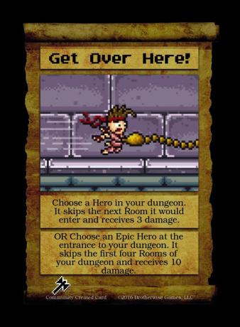 Choose an Epic Hero at the entrance to your dungeon. It skips the first four Rooms of your dungeon. Deal 10 damage to that Hero.