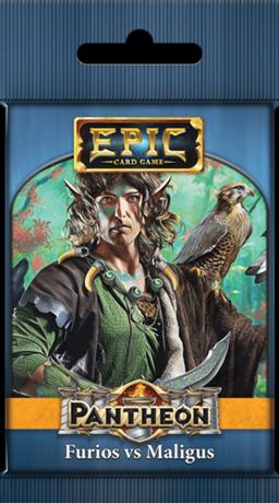 Epic Card Game: Pantheon is an expansion for the Epic Card Game that's packaged in six non-random booster packs (Furios vs Maligus, Helena vs Zaltessa, Angeline vs Scara, Gareth vs Lashnok, Shadya vs Valentia, and Riksis vs Tarken), with each booster pack containing twelve new game cards, 2 deity/token cards, and 1 double si ...