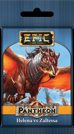 Epic Card Game: Pantheon is an expansion for the Epic Card Game that's packaged in six non-random booster packs (Furios vs Maligus, Helena vs Zaltessa, Angeline vs Scara, Gareth vs Lashnok, Shadya vs Valentia, and Riksis vs Tarken), with each booster pack containing twelve new game cards, 2 deity/token cards, and 1 double sided token card.
