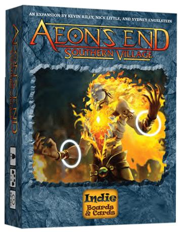Promos from the "Aeon's End: Outcasts" campaign that were not Kickstarter exclusive went into the "Southern Village" expansion. This expansion includes 1 new nemesis, 2 new mages, new market cards, and new treasures for Expedition Mode.